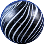 An Indian is a banded opaque marble that has an opaque black base. On the surface are bands consisting of colored strands or stretched colored flecks.