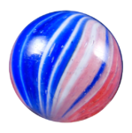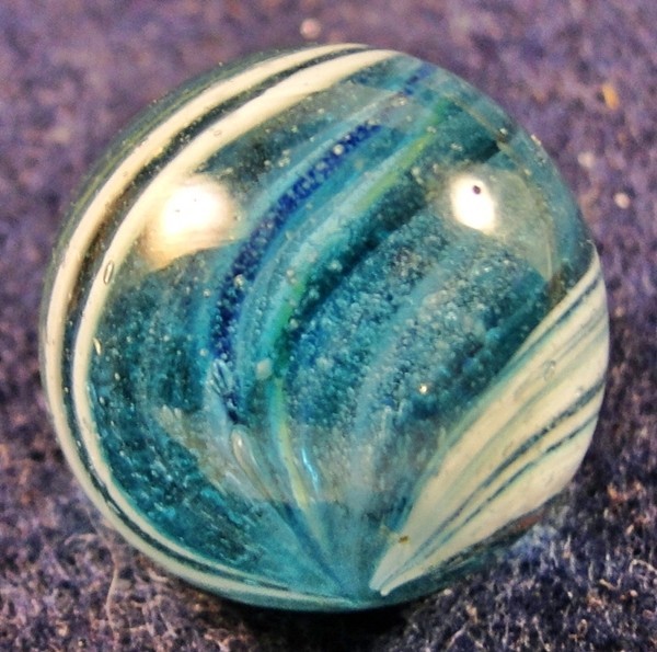Generally, the more colors, the more valuable the marble. Blue or red flecks on a white or yellow background is the most common. Yellow or green flecks, or a different colored background, are rarer. Brightly colored splotches are referred to as Clowns.
