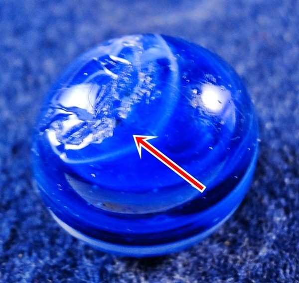 Transitional is the term used to collectively describe a variety of slag-type marbles that have pontils or shear marks on them. Amongst this type are the earliest German marbles, the earliest American-made marbles, as well as marbles from Japan and China.